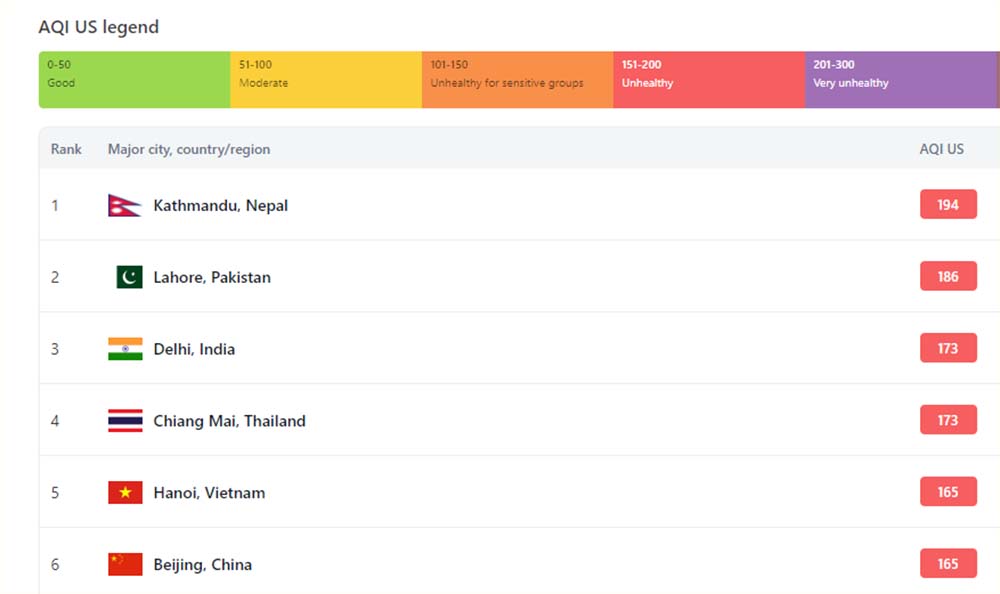 विश्वकै सबैभन्दा धेरै प्रदूषित सहर बन्यो काठमाडौँ