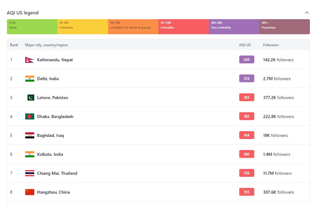 काठमाडौँ विश्वकै बढी वायु प्रदुषित शहर