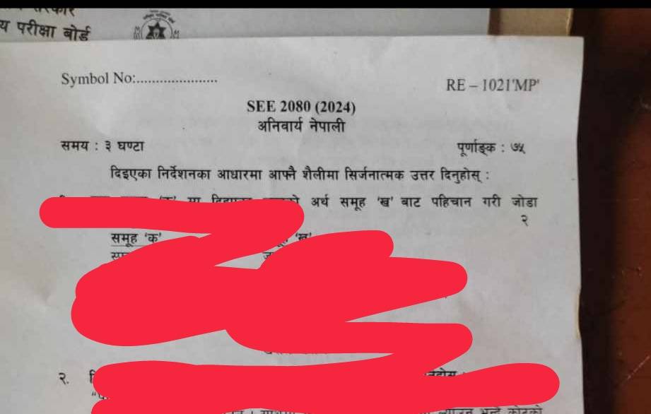 सामाजिक फीड, सिरहा, १६ चैत्र । माध्यमिक शिक्षा परीक्षा एसईईको प्रश्नपत्र बाहिरिएपछि प्रहरीले एक परीक्षार्थीलाई नियन्त्रणमा लिएको छ । शुक्रबार नेपाली विषयको प्रश्नपत्र गोलबजारस्थित जनता मावि परीक्षा केन्द्रबाट बाहिरिएको सिरहाका प्रमुख जिल्ला अधिकारी बासुदेव दाहालले जानकारी दिएका हुन् । प्रहरीले सुखीपुर नगरपालिकास्थित रजत जनक माविकी एक छात्रालाई नियन्त्रणमा लिएको पनि दाहालले जानकारी दिए । गोलबजार […]