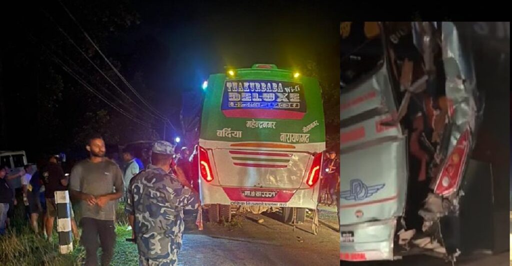भ्रमण जाँदै गरेको बस रोकि राखेको ट्रकमा ठोक्किँदा ७ जनाको मृत्यु, ३० जना घाइते