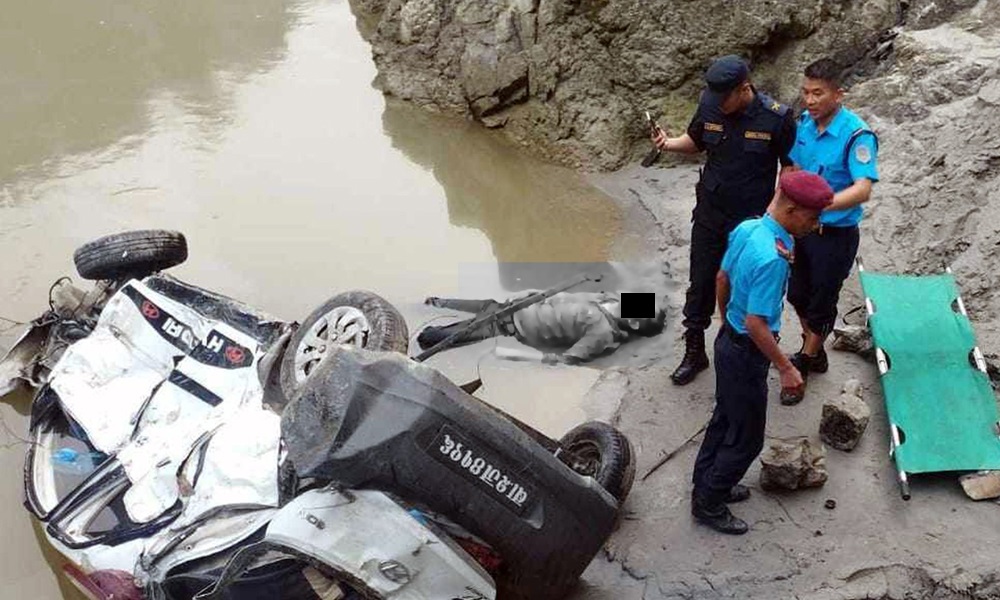 काठमाडौंबाट गोरखा जाँदै गरेको ट्याक्सी त्रिशूली नदीमा खस्दा पाँच जनाको मृत्यु