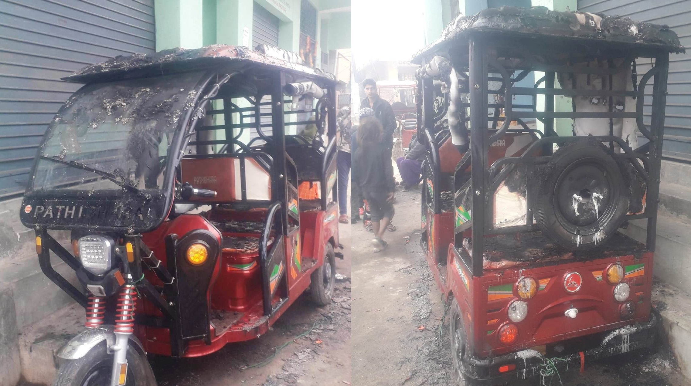 सडक छेउमा पार्किंग गरि राखेको अटो रिक्सा बिहान उठ्दा जलेको अवस्थामा पाइएको छ । आगजनीले रिक्सामा धेरै क्षति पुगेको छ । केही महिना अघि मात्र उनले आफूले एक एक गरी जम्मा गरेको रकम, पैँचो र ऋण लिइ अटो रिक्सा किनेर जीवन यापन गर्दै आएका थिए ।