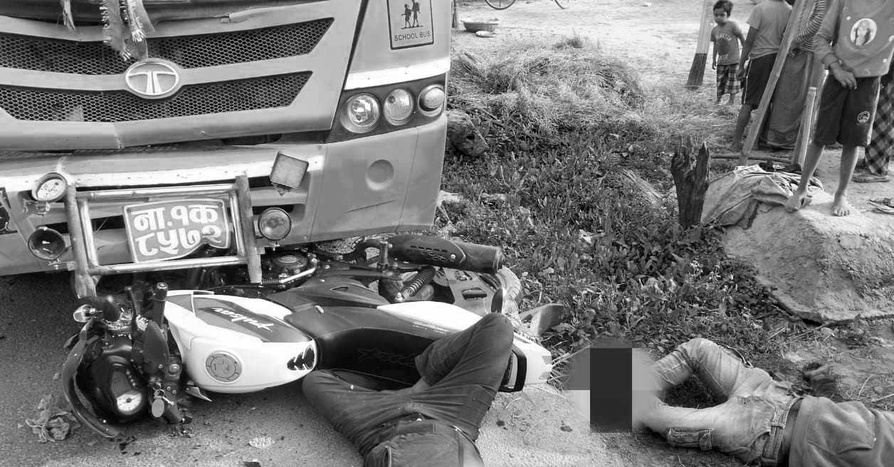 बजे बटेश्वर गाउँपालिका ३ स्थित ढल्केवरको चिल्ड्रेन गार्डेन बोर्डिंग स्कुलको ना १ क ८५७२ नम्बरको बसले मधेश प्रदेश ०२–००५ प ५७२९ को मोटरसाइकलमा ठक्कर दिएको हो ।