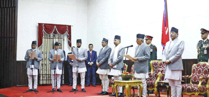त्यस्तै, माओवादीबाट नारायणकाजी श्रेष्ठ उपप्रधान तथा परराष्ट्रमन्त्री, वर्षमान पुन अर्थमन्त्री, शक्ति बस्नेत उर्जामन्त्री, रेखा शर्मा सञ्चारमन्त्री, हितबहादुर तामाङ पर्यटनमन्त्री, रास्वपाबाट रवि लामिछाने उपप्रधान तथा गृहमन्त्री, डीपी अर्याल श्रममन्त्री, विराजभक्त श्रेष्ठ युवा तथा खेलकुदमन्त्री, सुमना श्रेष्ठ शिक्षामन्त्री, एकीकृत समाजवादीबाट भानुभक्त जोशी संघीय मामिला तथा सामान्य प्रशासनमन्त्री र धनबहादुर बुढा शहरी विकासमन्त्री बनेका छन् ।