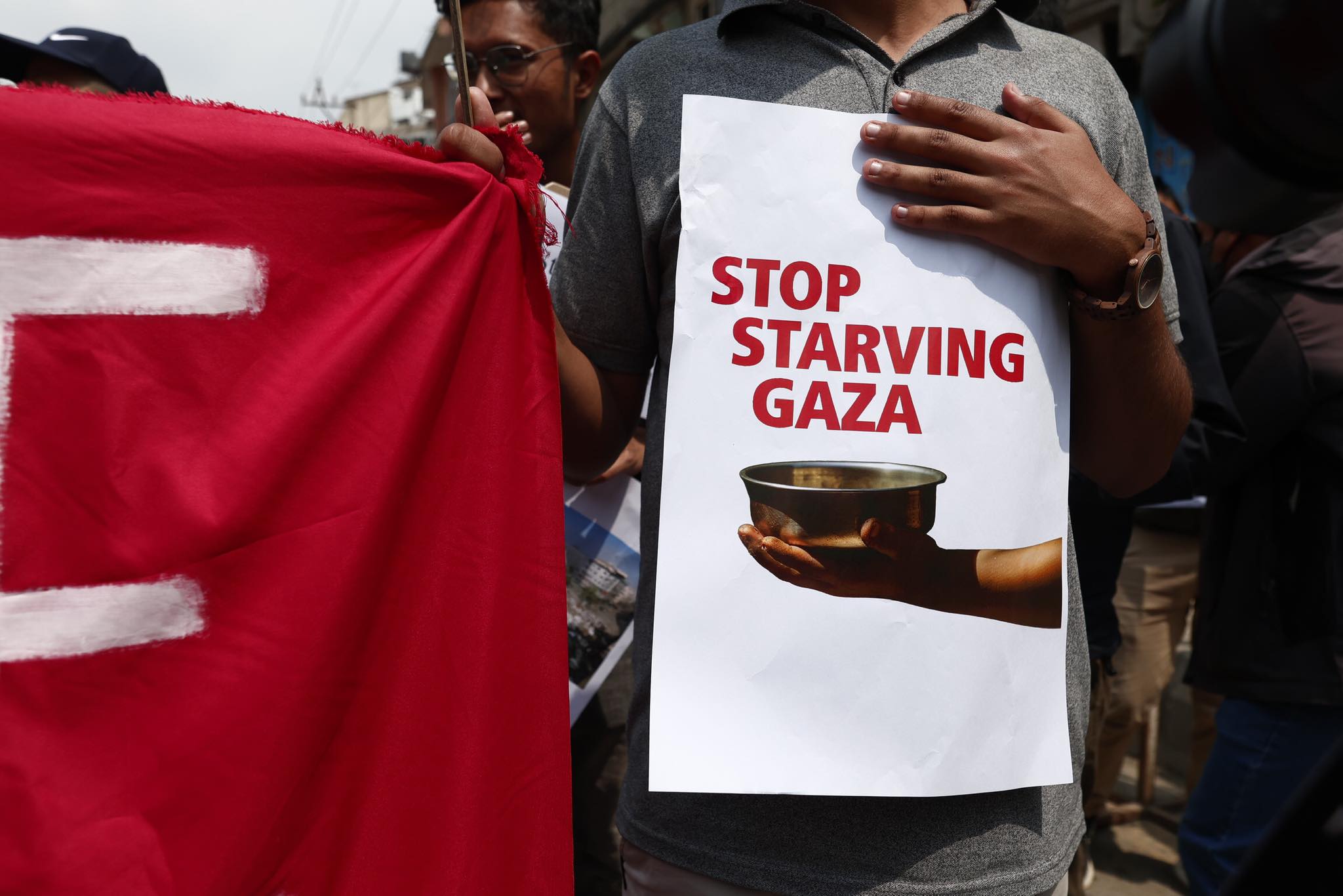 प्रदर्शनमा उत्रिएका चिकित्सकले ‘गाजामा नरसंहार रोक’, ‘प्यालेस्टाइनमा भोकमरी रोक’, ‘अस्पतालमा बमबारी नगर’, ‘एम्बुलेन्सलाई ढाल बनाउने होइन’ लगायतका नारा अंकित ब्यानर र प्लेकार्ड बोकेका थिए।
