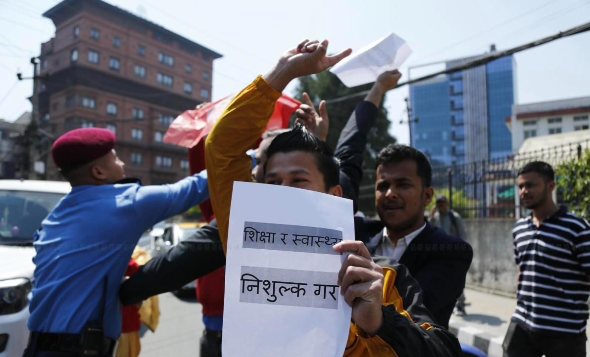 जनताको संविधान कार्यान्वयन गर्नुपर्ने, नागरिकको उपचार राज्यले गर्नुपर्ने, निशुल्क शिक्षाको व्यवस्था गर्नुपर्ने लगायतका माग राख्दै नेविसंघले प्रदर्शन गरेको हो ।