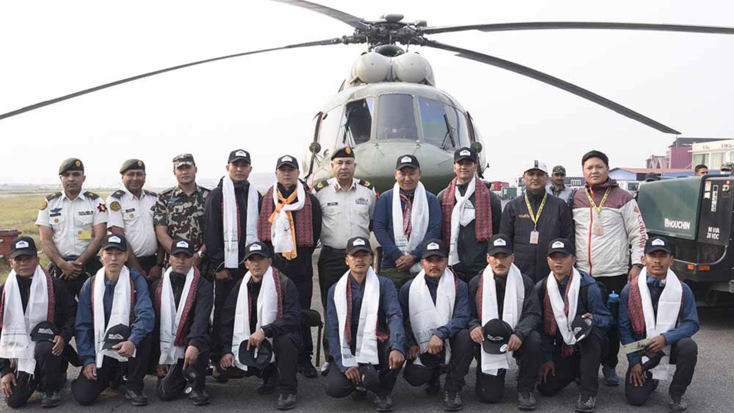 सगरमाथा, ल्होत्से तथा नुप्त्से हिमाल सफाइको लागि १२ जना सैनिक र १ जना शेर्पा सरदारसहित १३ जनाको सफा हिमाल अभियान-२०२४ मा संलग्न रहने टोली नेपाली सेनाको हवाई साधन मार्फत स्याङ्गबोचे इलाकामा अवतरण भएको छ ।