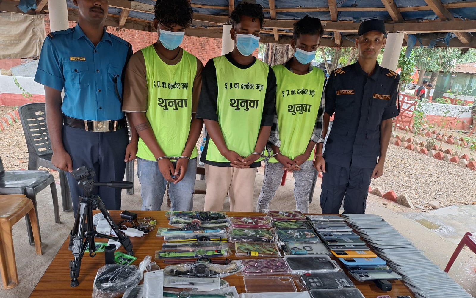 उनका अनुसार, पक्राउ परेकाको साथसाथै उनीहरूको घर र लुकाइएका स्थानबाट विभिन्न कम्पनीका १२ थान मोबाइल, घडी, क्यामेरा स्टेन्ड, मोबाइल चार्जर, टेम्पर ग्लास, लेन्सलगायतका सामग्री बरामद गरिएको छ।