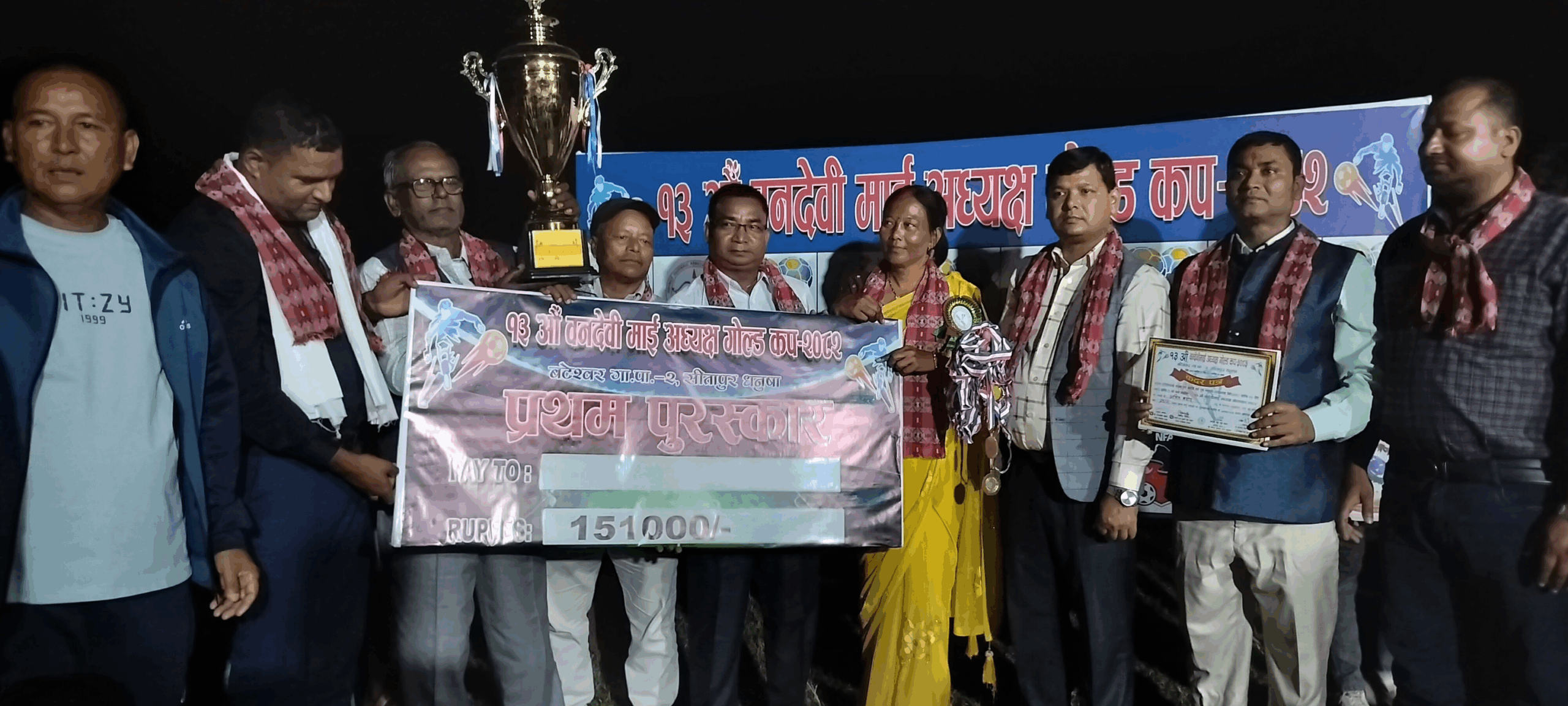 धनुषाको बटेश्वर गाउँपालिका–२ सितापुरमा सम्पन्न १३ औं बनदेवी माई अध्यक्ष गोल्डकप–२०८२ को उपाधि वीरगंज यूनाइटेड पर्साले जितेको छ ।