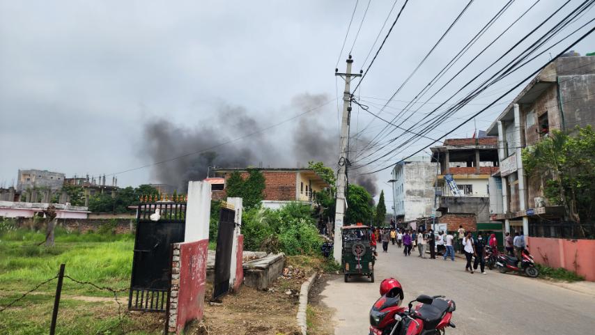 जनकपुरमा एमाले नेता रघुवीर महासेठको घरमा प्रदर्शनकारीले गरे आगजनी