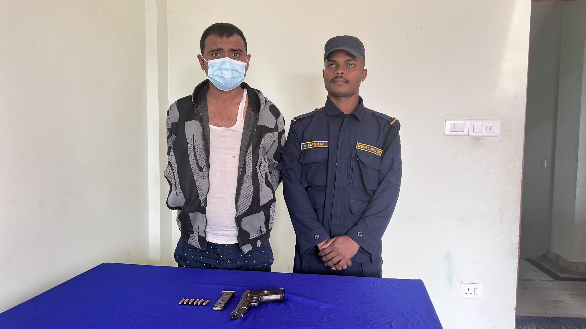 सोमबार राति सर्लाही प्रहरीले भारत बिहार सीतामढी थाना सैयारा ग्राम बस्ने २८ वर्षीया सन्नी कुमार सिंह र मोतीहारी गंगापिपरा बस्ने २४ वर्षीय जितेन्द्र कुमार राउतलाई पक्राउ गरेको थियो। उनीहरूको साथबाट एक थान म्यागजिन, अमेरिकन पेस्तोलमा लाग्ने ६ राउण्ड गोली बरामद भएको छ।