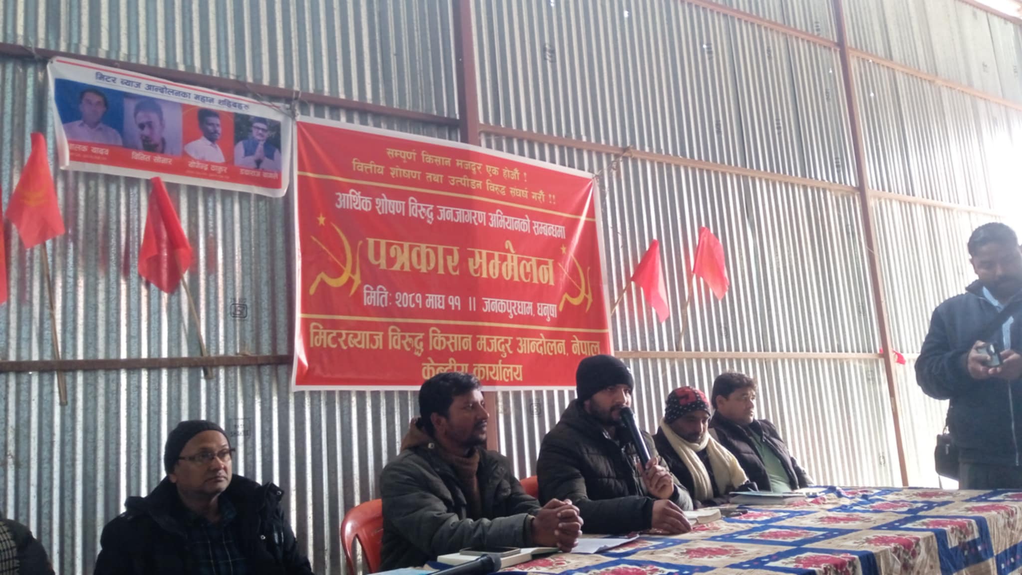 मिटरव्याज विरूद्ध किसान मजदुर आन्दोलन नेपालले जनकपुरधाममा पत्रकार सम्मेलन गर्दै मिटरव्याज विरोधी जनजागरण अभियानको शुरुवात माघ १४ गते सोमबारबाट गर्ने घोषणा गरेको छ। आन्दोलनका केन्द्रिय अध्यक्ष अवधेश कुशवाहाले संसदमा मिटरव्याजको विरूद्ध कानूनी प्रावधान बनेपनि यसको कार्यान्वयनमा ढिलाई भइरहेको र ६० हजार निवेदनको बावजूद १० प्रतिशत मात्र मुद्दा समाधान भएकोमा असन्तोष प्रकट गरे।