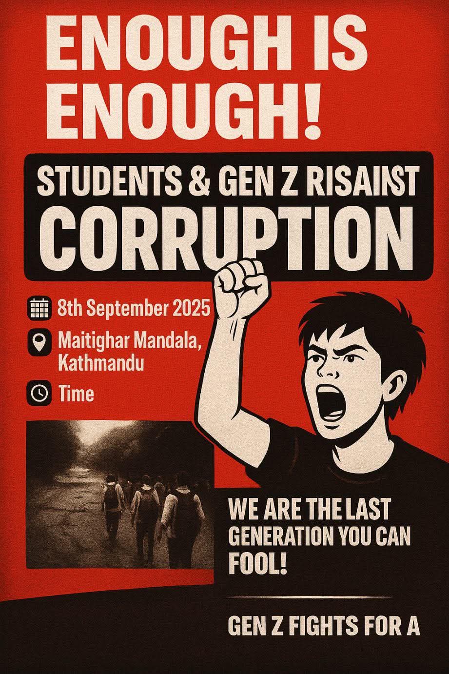 उनीहरूले काठमाडौंको माइतीघर मण्डलमा भ्रष्टाचार र सामाजिक सञ्जाल बन्द विरोधमा प्रदर्शन गर्न लागेका हुन्।सोमबार बिहान ११ बजे प्रदर्शन हुनेछ।