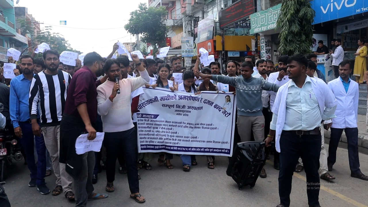 मधेस प्रदेशका निजी अस्पतालका स्वास्थ्यकर्मीहरू श्रम शोषण र दमनविरुद्ध आन्दोलनमा उत्रिएका छन् । आठबुँदे मागसहित उनीहरूले पूर्वघोषित कार्यक्रमअनुसार जनकपुरधाममा शान्तिपूर्ण आन्दोलन सुरु गरेका हुन् ।