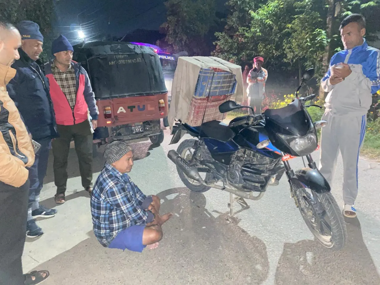 अटोमा सवार श्रेष्ठ पक्राउ परेका छन् भने मोटरसाइकलमा रहेका मानिस फरार भएकाले उनीहरुको खोजी भइरहेको प्रहरीले जनाएको हो ।